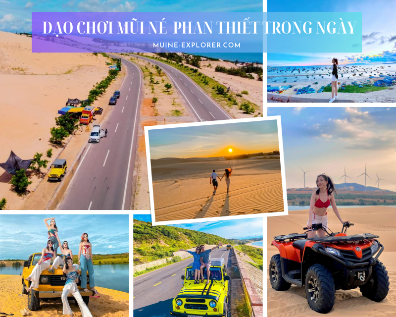 Mũi Né là nơi có rất nhiều địa điểm du lịch và hoạt động vui chơi cảm giác mạnh. Lịch trình tham quan của tour xe Jeep thường sẽ đưa du khách đi qua cung đường biển Hòn Rơm đến 4 điểm chính là Bàu Trắng, Đồi Cát Bay, Làng Chài, Suối Tiên, xe jeep sẽ ghé đến Cung đường đôi, cánh đồng quạt gió và dừng lại để bạn thỏa thích chụp ảnh sống ảo tại đây. Ngoài ra, bạn cũng có thể lựa chọn các tour xe jeep có đi Lâu Đài Rượu Vang, Tháp Poshanư, bãi Đá Ông Địa, Bãi Rạng, Cafe Bãi Biển ngắm hoàng hôn...